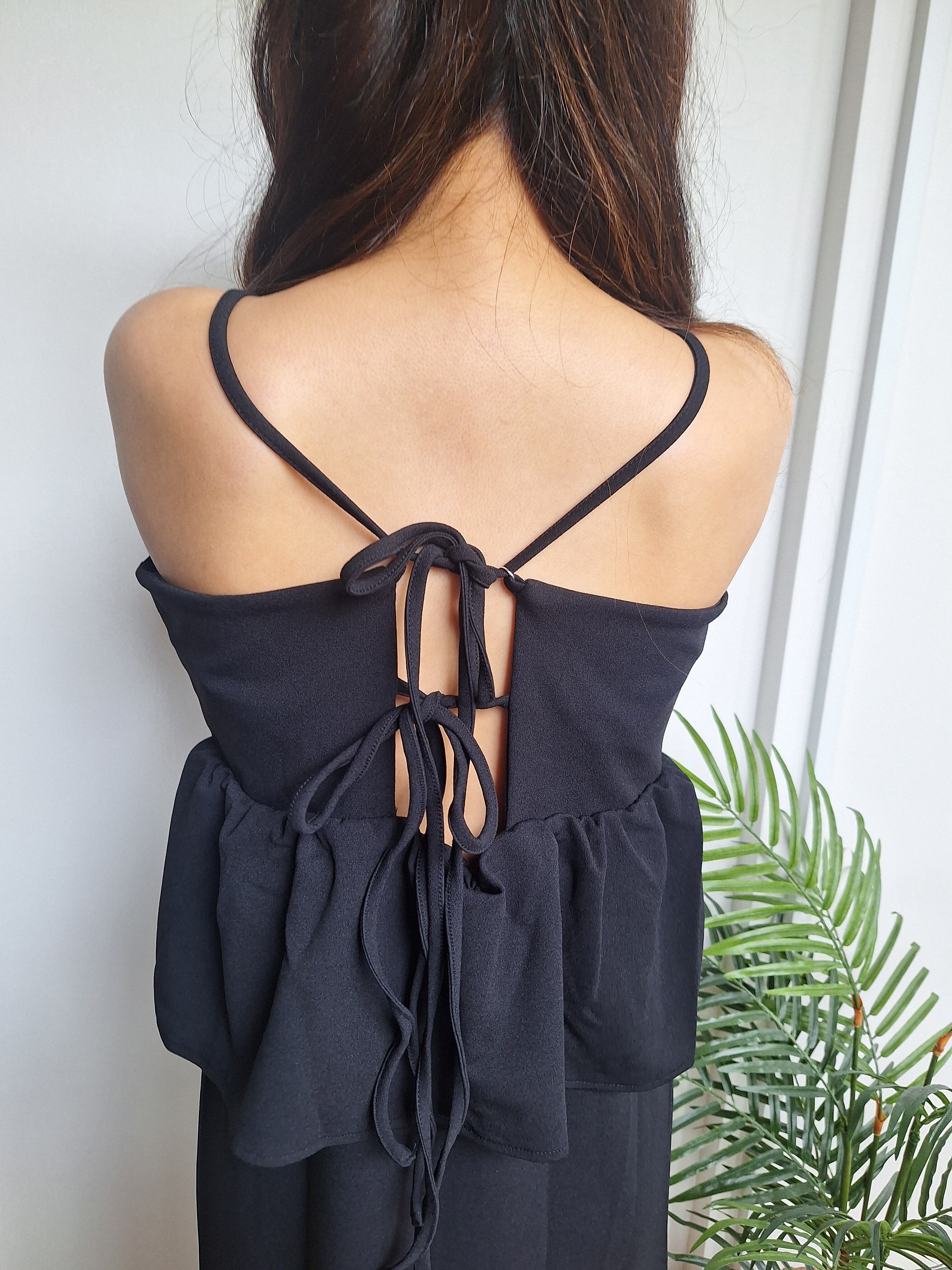 女性らしさが際立つすっきりとしたIラインのキャミワンピースです。華奢なストラップは後ろで結ぶタイプで、結び目を調整して着丈の長さを変えて頂けます。後ろのダブルリボンがポイントになった女性らしい印象に。ポリウレタンが入っているので伸縮性にも優れノンストレスな着心地です。
