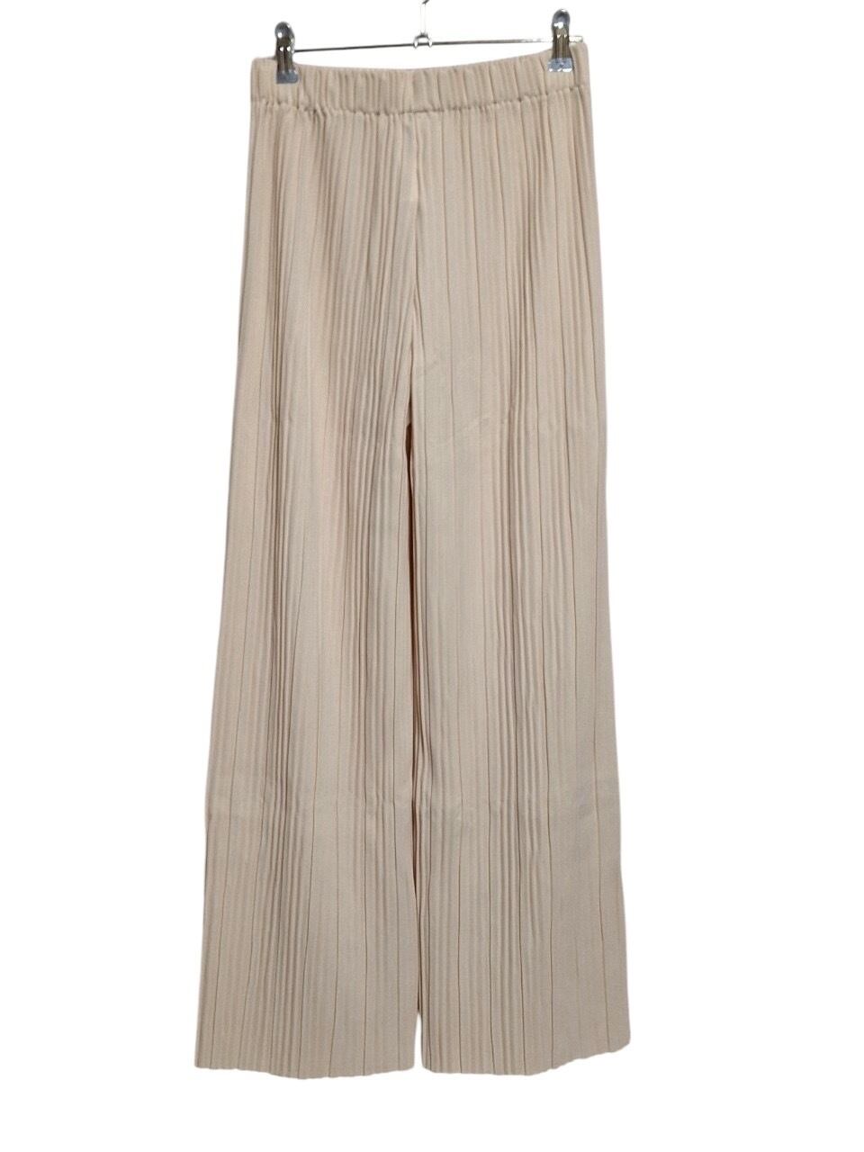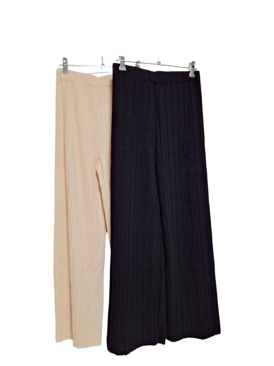 ウエスト総ゴムでリラクシーな履き心地と、プリーツが作り出す美シルエットを両立させたパンツです。縦のラインを強調する少し太めのプリーツ加工と、セミワイドのパンツラインがどんなトップスとも合わせやすい汎用性のあるデザインに。チュール重ねのスウェットやオーバーブラウスとゆるっと合わせて今年らしいコーディネートが完成します。